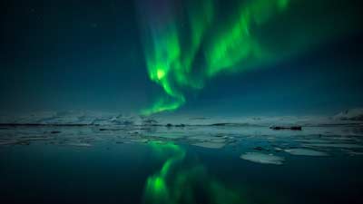 The Northern Lights tour in Iceland takes you to see a spectacular natural phenomenon which happens during the winter months. The Northern Lights, also known as Aurora Borealis, are caused by the interaction of particles from the sun with the upper atmosphere near the North Pole. The most common color is green but on good nights you might experience an entire spectrum with purple, red, blue, and yellow.